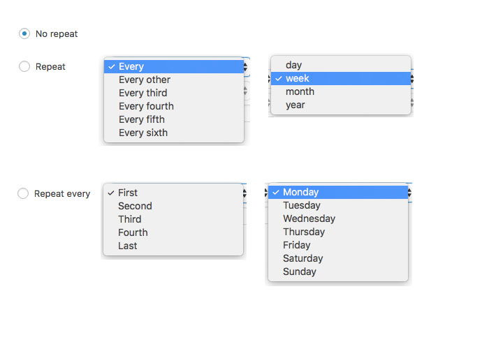 | Monday | Tuesday | Wednesday | Thursday | Friday | Saturday | Sunday |